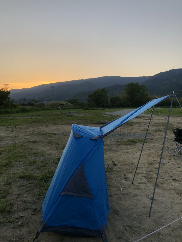 同じような使い方のできるのがパップテントですが、ポールを二つ立てるのが1人だと少し難しかったのと、タープはあるが、横壁が確保できない(横壁があるテントもある)ところもあったので、僅差でワンポールを使うことにしました。
