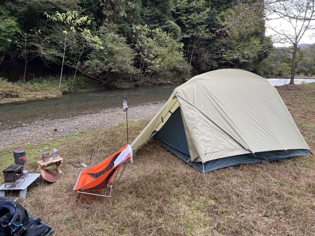 ソロの時も複数の時も、基本的にはワンポールテントを使っていて、特に冬キャンプでは薪ストーブを使いたいので、床のないこのテントは重宝しています。
