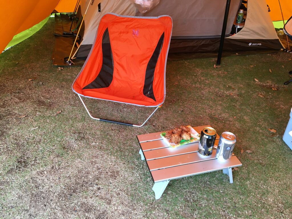 最近では、このようにチェアなしでキャンプをすることが増えましたが、上記のメイフライチェアがあまりにもコンパクトなので、使わずとも念の為持っていくという選択ができます。