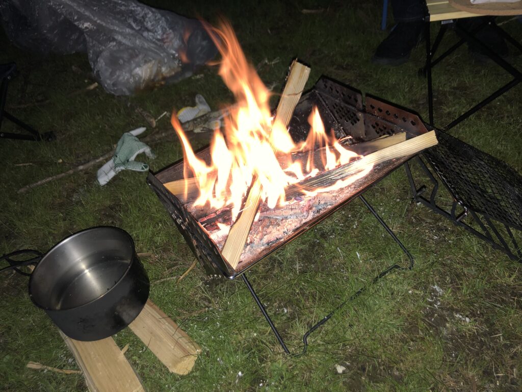 特に壊れたとかでなく、焚き火で調理したいという思いから、機能性の高い焚き火台に変えました。