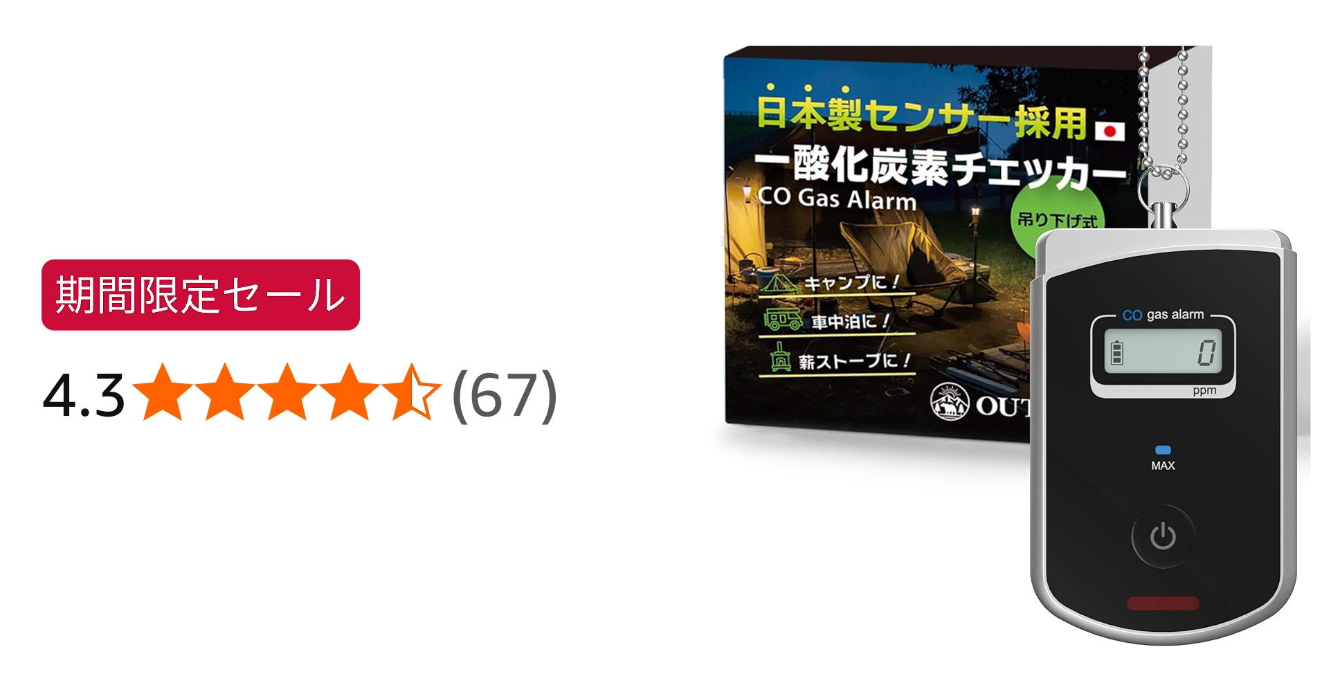 セール: 【自衛隊採用実績・日本製センサー搭載】 一酸化炭素チェッカー 日本製センサー 一酸化炭素検知器 キャンプ 車中泊 OUTBEAR